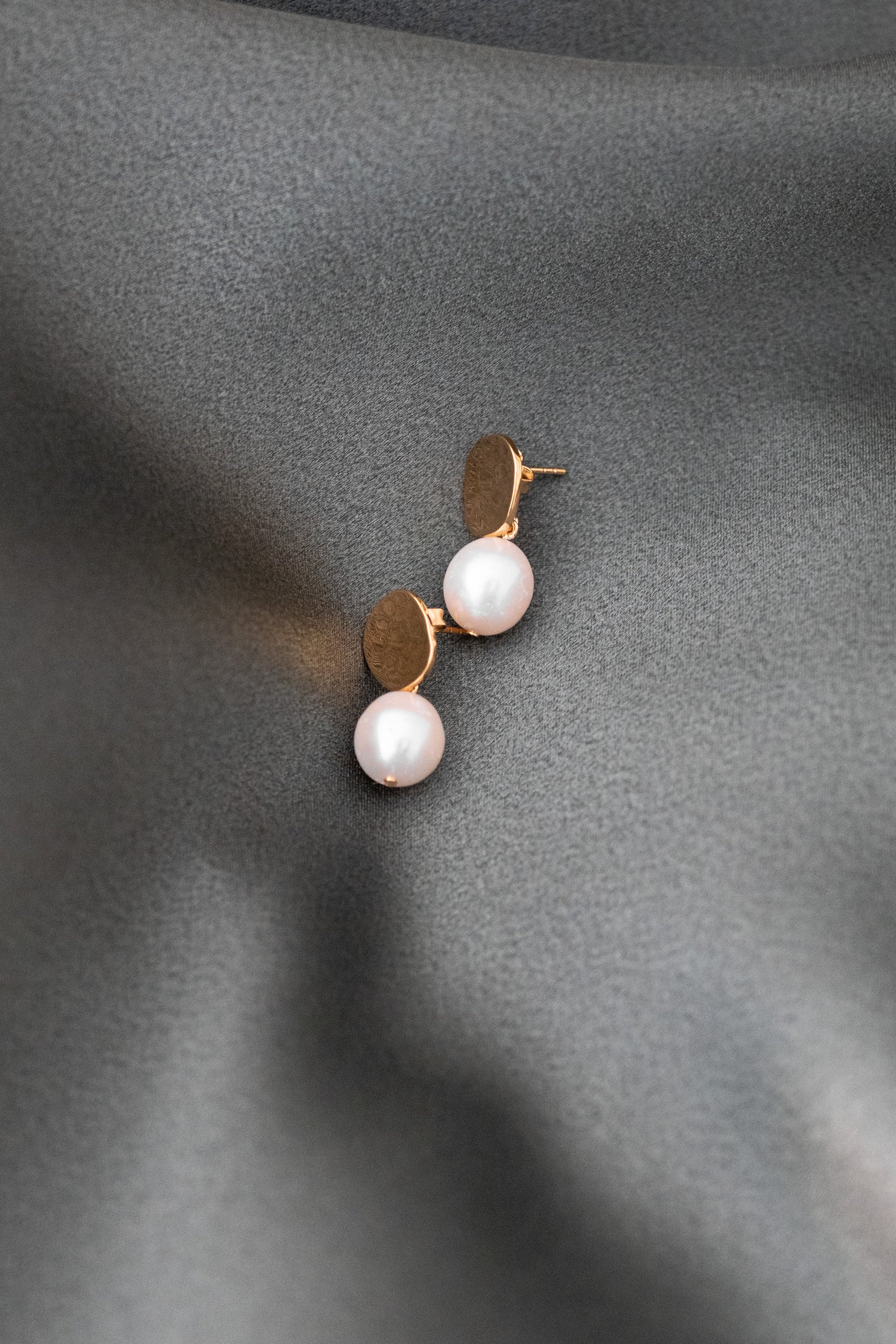 Beautiful gold plated sterling silver earrings with a hammered plate and fresh water pearl.