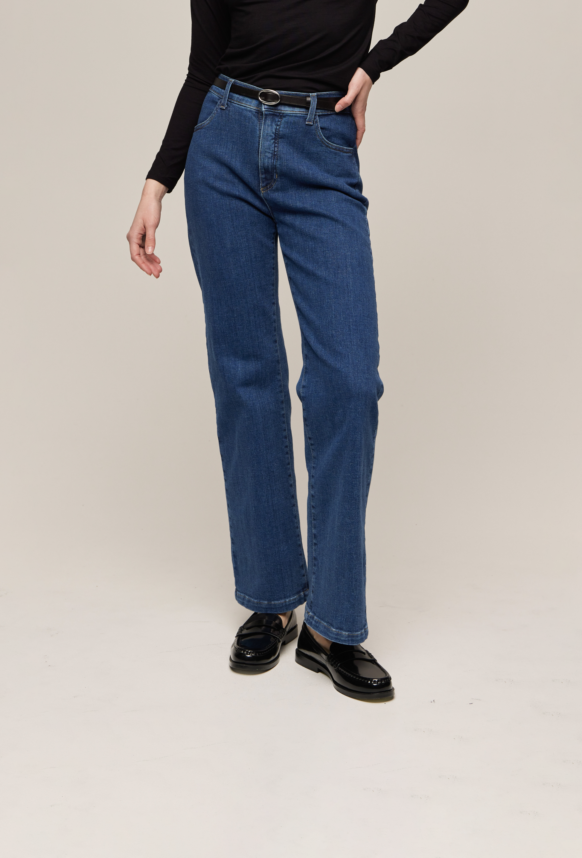 The Gauhar Helsinki denim jeans are defined by comfort. A high-rise silhouette with a comfortable stretch waist. Classic mid-blue wash, they're shaped with a straight leg and classic full length. These jeans are perfect for everyday wear.