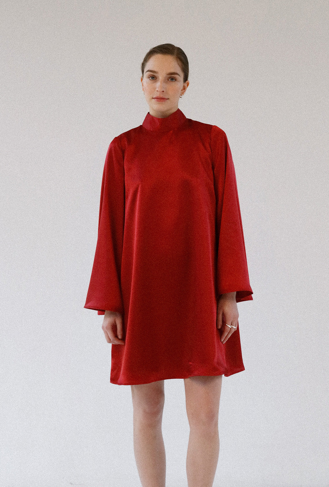 The Natasha mini dress creates a beautiful silklike movement, it has a relaxed silhouette and long slightly wide sleeves. Wear yours with sheer tights and kitten heels.